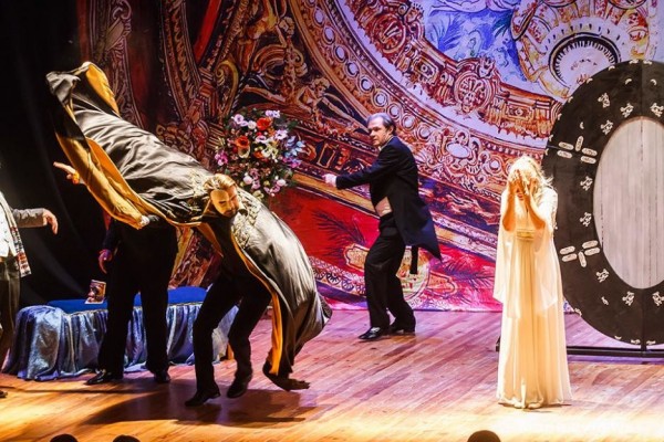 В спектакле есть место и комедии. Сцены с участием нового управляющего Шоле и его супруги-примы Карлотты нарочито комичны. Сам Эрик не лишён чувства юмора, правда, юмор немного чёрный, но такова жизнь в подвале. Первый акт довольно светлый и лёгкий, в нём очерчивается круг взаимоотношений персонажей. Заканчивается он трагично: фантом сбрасывает на сцену люстру, и это намёк на то, что дальше всё будет только хуже. Второй акт намного драматичнее, в нём происходит конфликт Кристин и Эрика, обнажившего по её просьбе лицо. В нём и одна из самых трогательных сцен в спектакле — дуэт отца и сына, бывшего управляющего и фантома. Они наконец-то воссоединяются, но, увы, ненадолго, лишь для того, чтобы расстаться уже навсегда: фантом умирает, получив первый и последний в своей жизни поцелуй от Кристин.