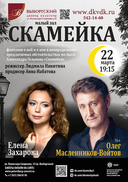 Сюжет спектакля понятен и прост: случайная встреча двоих на скамейке в парке, где Он меняет имена и лица, а Она каждый раз готова обманываться и ждать. Мужчина — актер театра и кино Олег Масленников-Войтов, и женщина — Елена Захарова, актриса театра и кино, — в ожидании любви. Это история про всех нас и про желание найти искренность в мире одиночества.