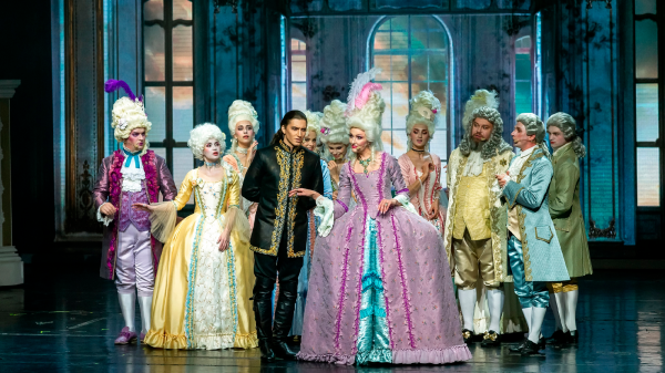 - Декорации - трансформеры переносят зрителей то в роскошный французский дворец в стиле барокко, то в Летний сад, то в покои старой Графини, а дополняют действие десятки уникальных видео анимированных картин.