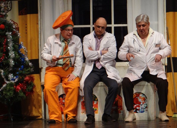 В гущу событий попадают жена, друзья, персонал клиники, пациенты и многие другие персонажи. В спектакле, помимо нелепых, гомерически смешных ситуаций и забавных положений, есть романтическая история любви, классический драматический треугольник и нежная история дружбы.