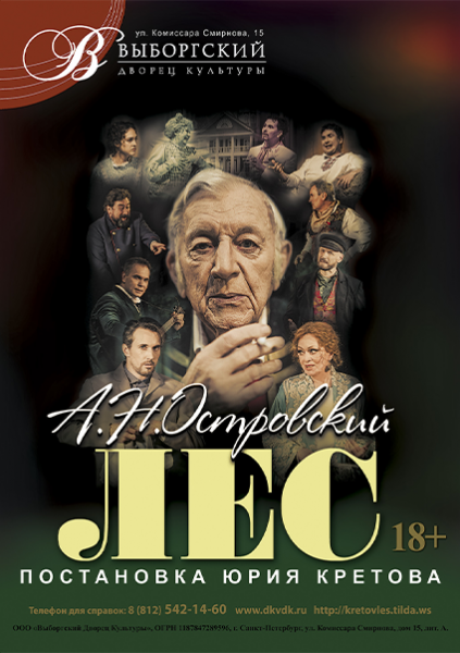 К 200 летию Александра Островского Юрий Кретов представляет социальную комедию с участием актеров Петербургских театров по пьесе А.Н. Островского «ЛЕС»